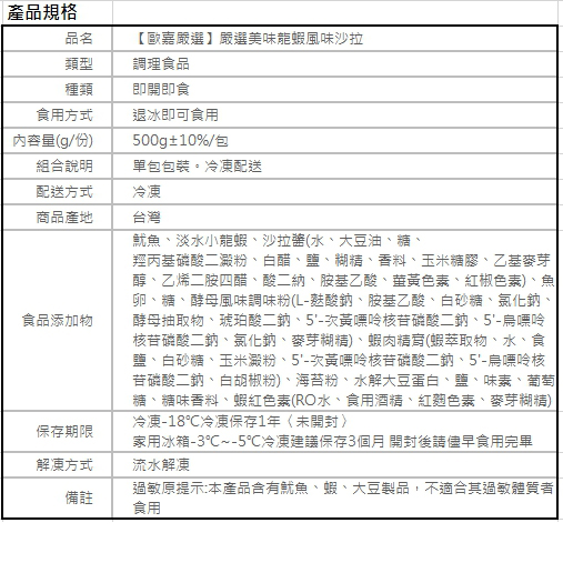 免運【歐嘉嚴選】嚴選美味龍蝦風味沙拉《最低267.5元》