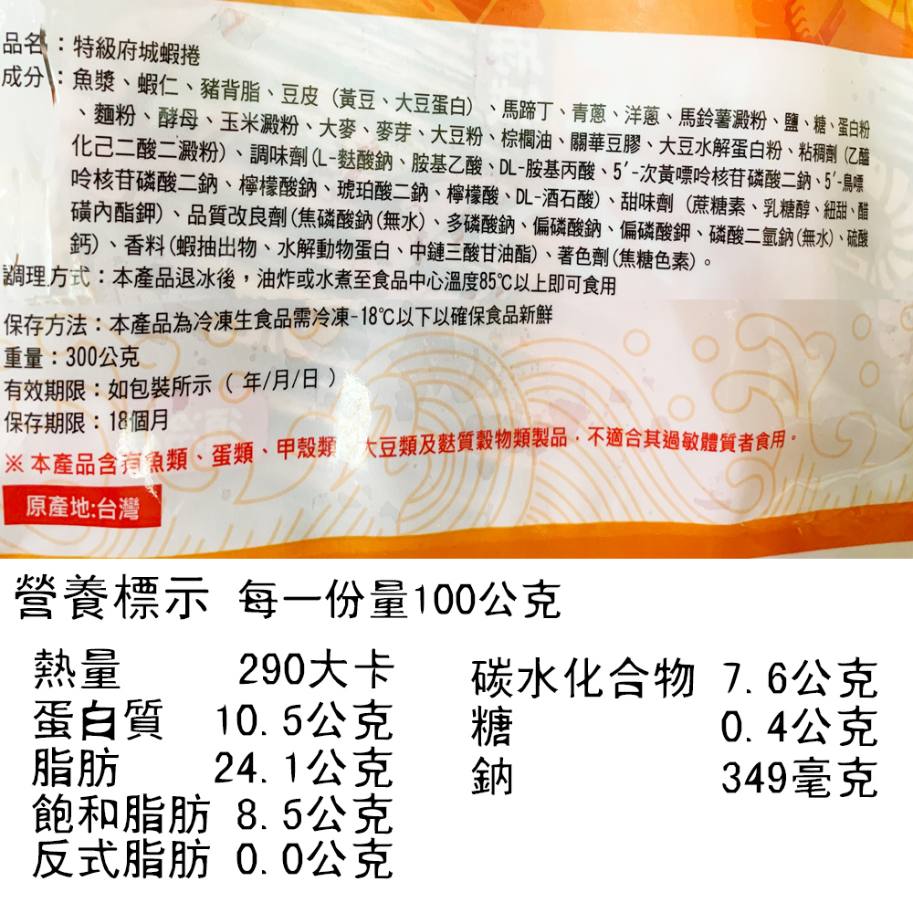 品名:【歐嘉嚴選】府城蝦捲-10條/盒