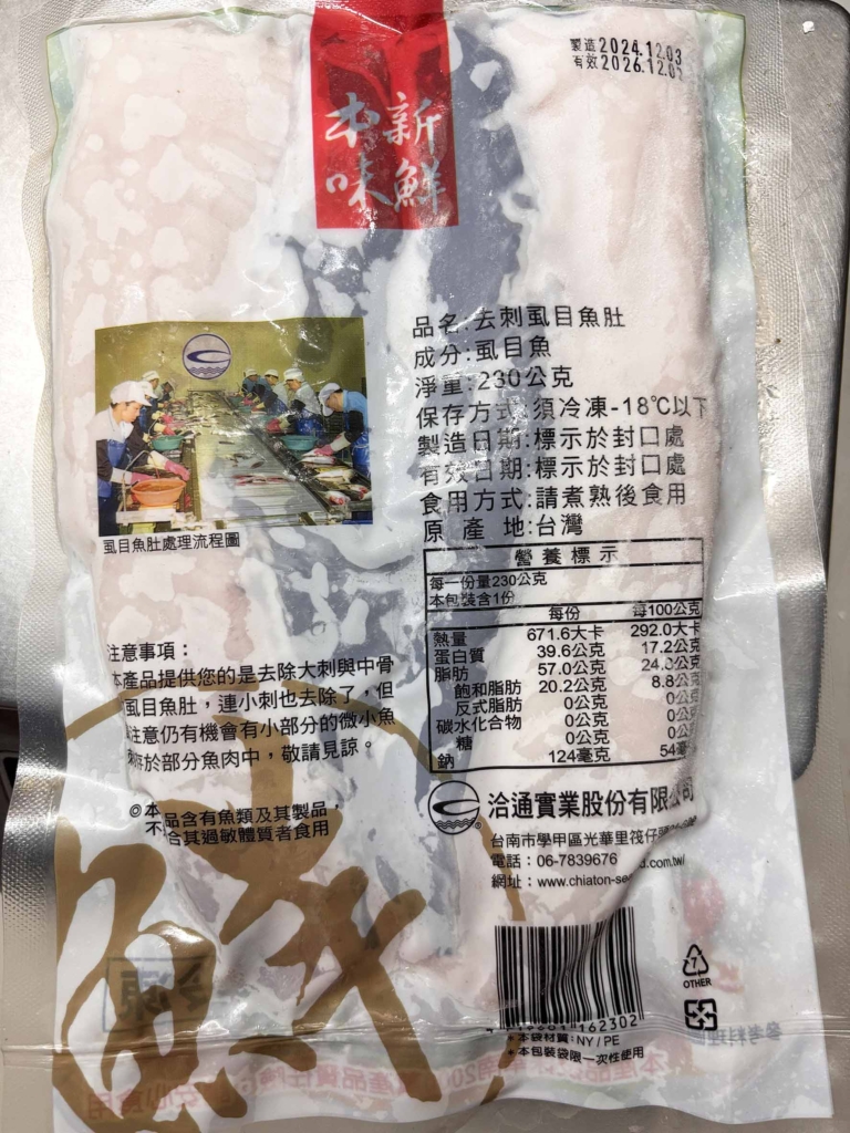 🐟【大片虱目魚肚】